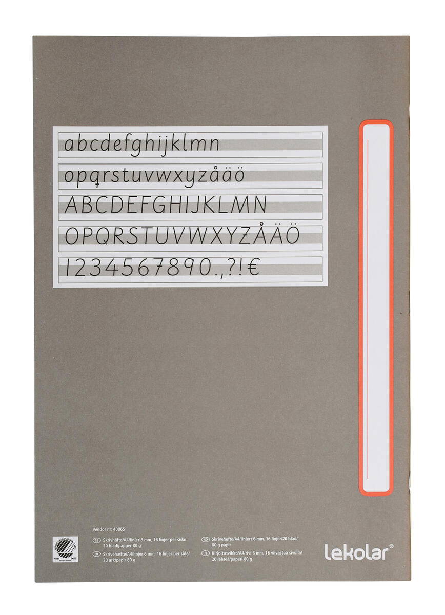 16 linjer 14 mm med hjeleplinjer. 80g papir. Svanemerket, lisensnummer 30410112.