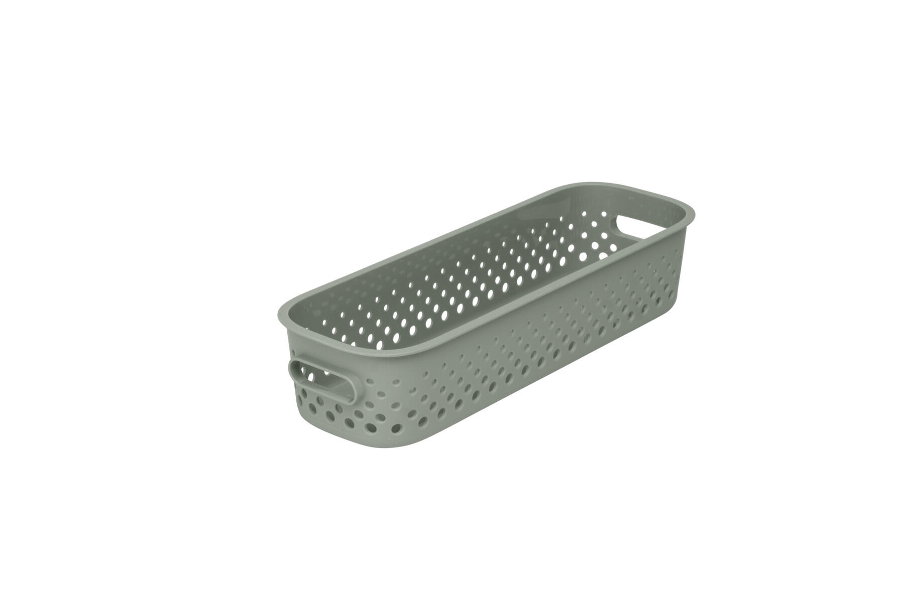 Transparent oppbevaringsboks med lokk og 6 fargede innsatsbokser, 2 gule, 2 blå og 2 rosa. Perfekt for oppbevaring av flere ting i samme eske. Av polypropylen. Mål: 40x30x19 cm.