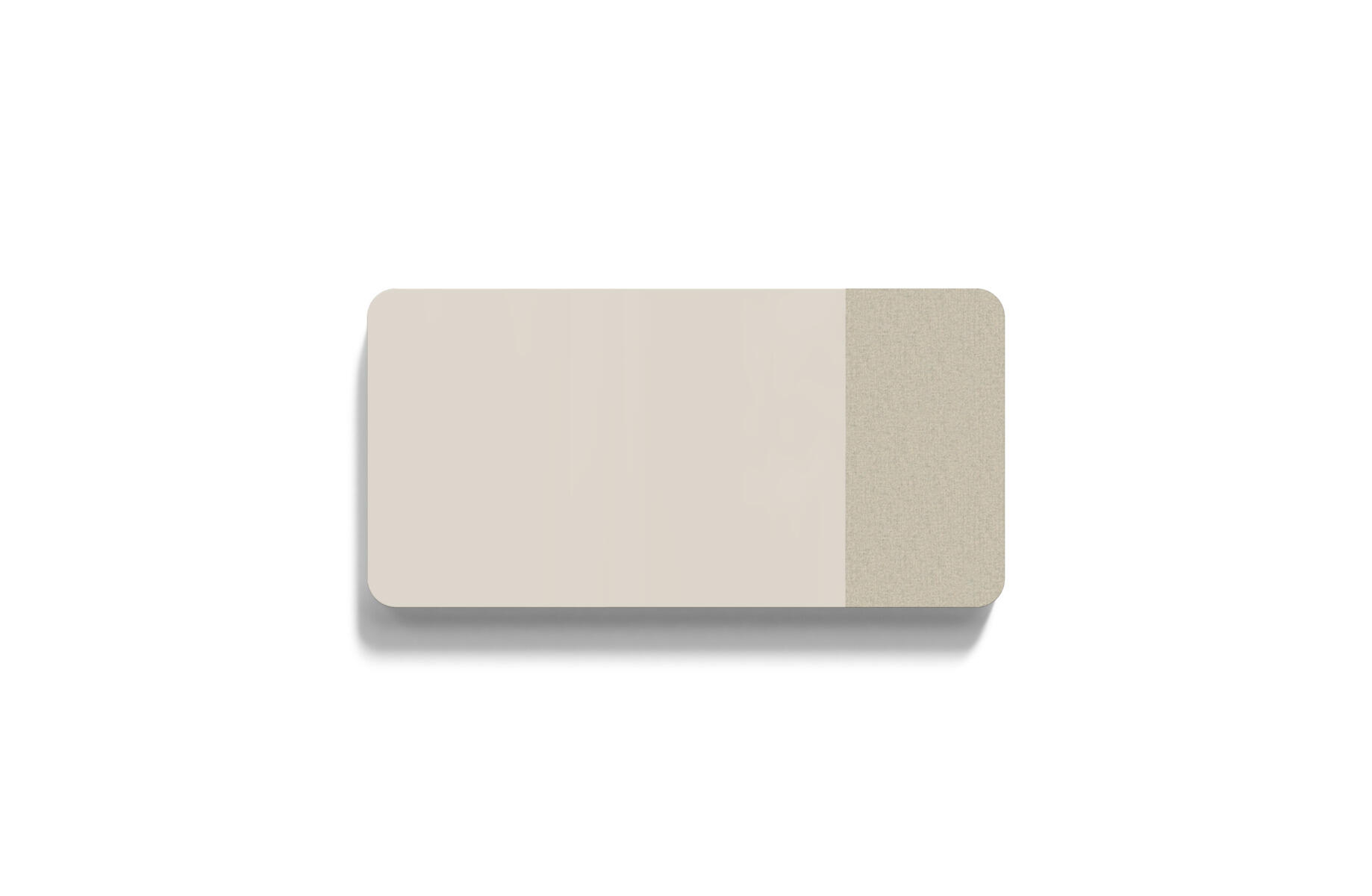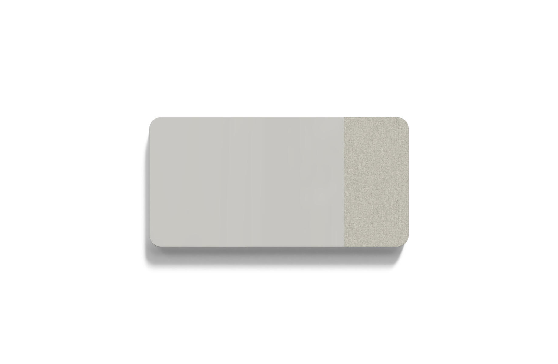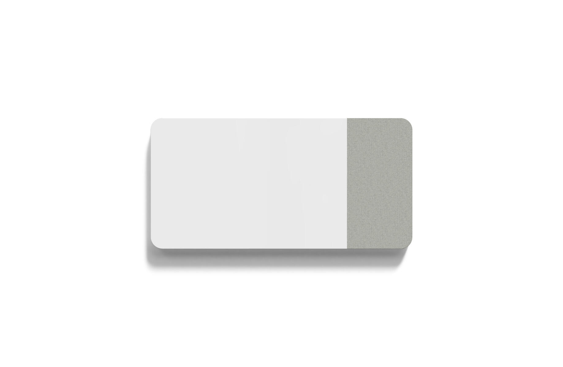 Tavle med kombinasjon av stoffkledd flate og magnetisk skirvbar glassflate samt lydabsorberende fyll. Den stoffkledde flaten er 50 cm bred. Skjulte beslag
