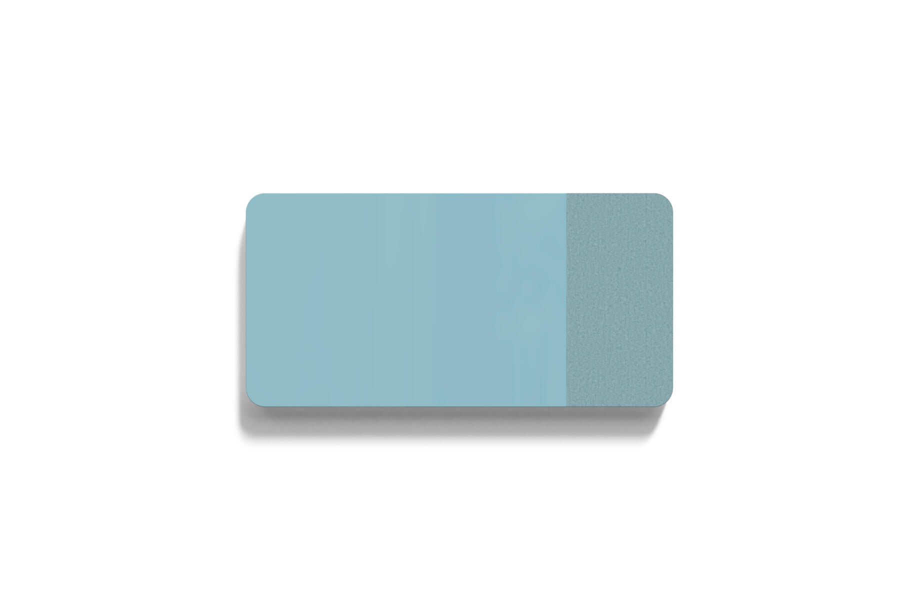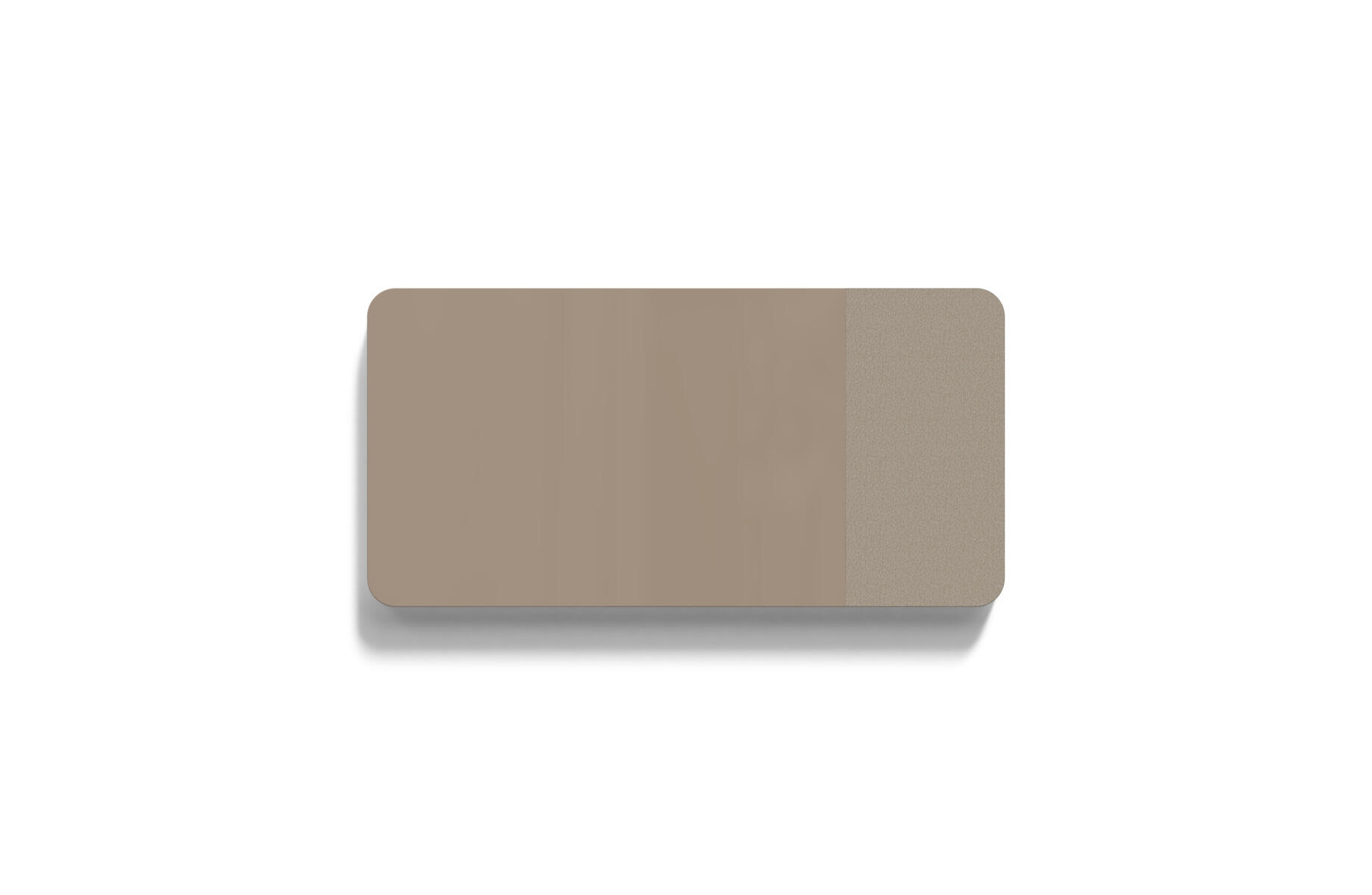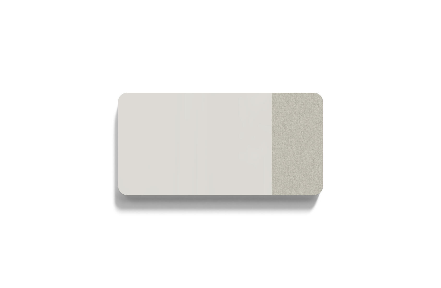Tavle med kombinasjon av stoffkledd flate og magnetisk skirvbar glassflate samt lydabsorberende fyll. Den stoffkledde flaten er 50 cm bred. Skjulte beslag