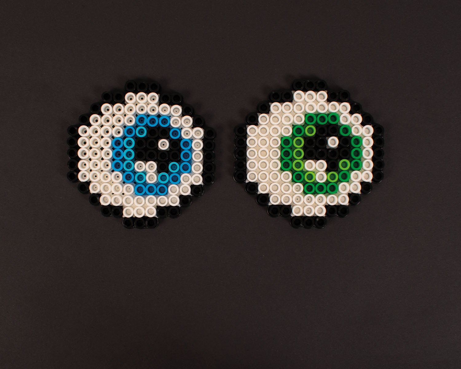 Legg bakepapir over perlene og stryk langsomt med strykejern til alle perlene har smeltet sammen (men ikke i platen). OBS! Få hjelp av en voksen når du skal stryke. Både strykejernet og perlene blir veldig varme. Legg noe tungt over og la figuren avkjøles.
