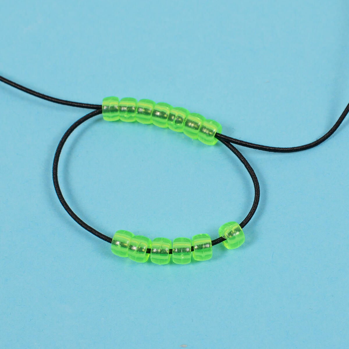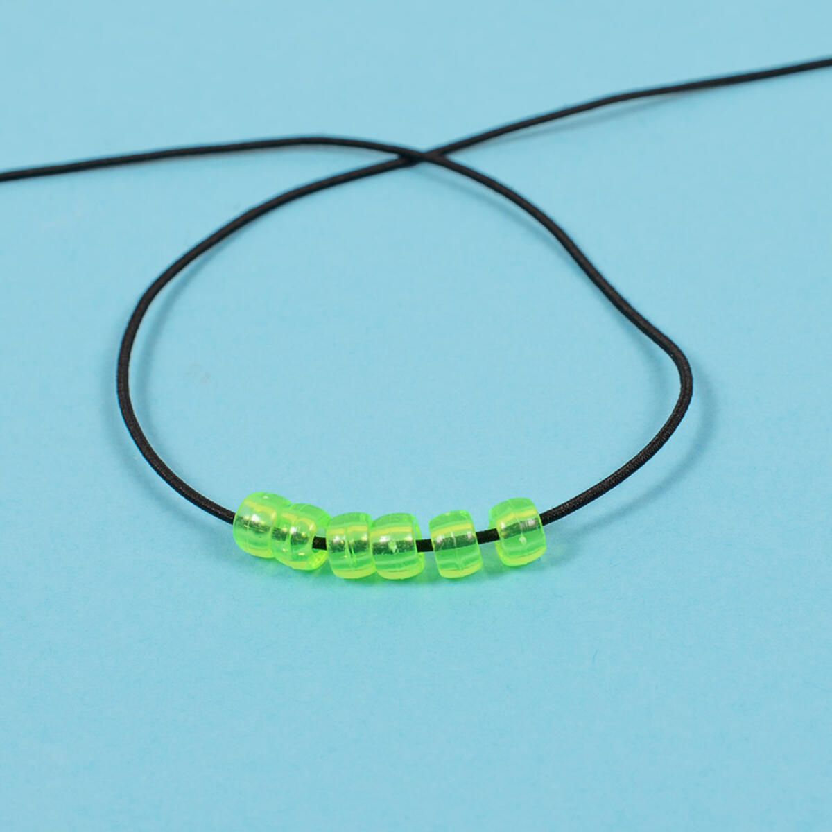 - Tre 7 grønne perler på den ene enden, og tre den andre enden gjennom de samme 7 perlene.