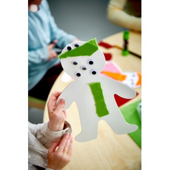 Del ut pappfigurer, så alle kan lage sin egen figur.
