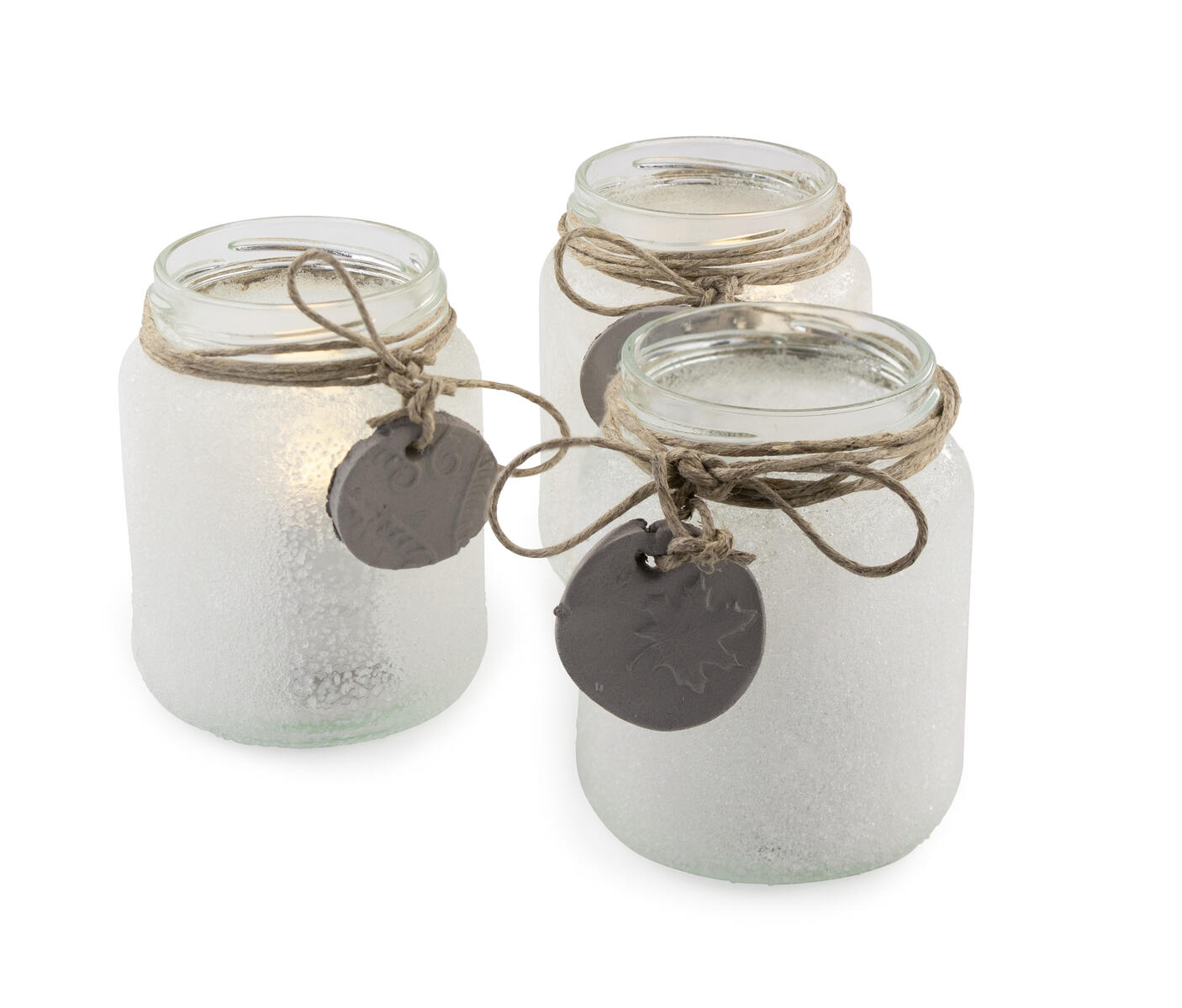 - Surr hamptråd rundt toppen av glasset, og heng leirepynten på tråden.