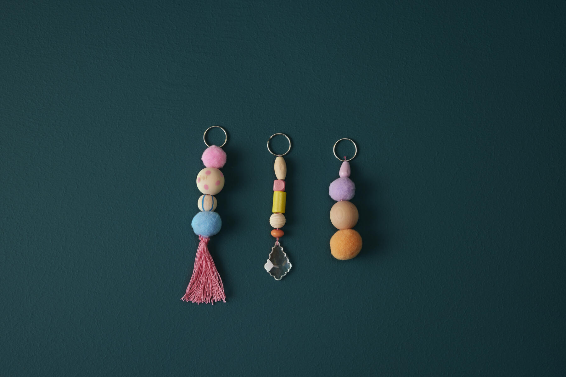 - Pynt tråden som dere vil ā vi har brukt perler, pompomer og prismer.
