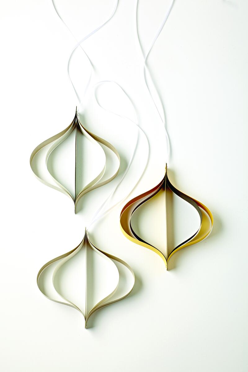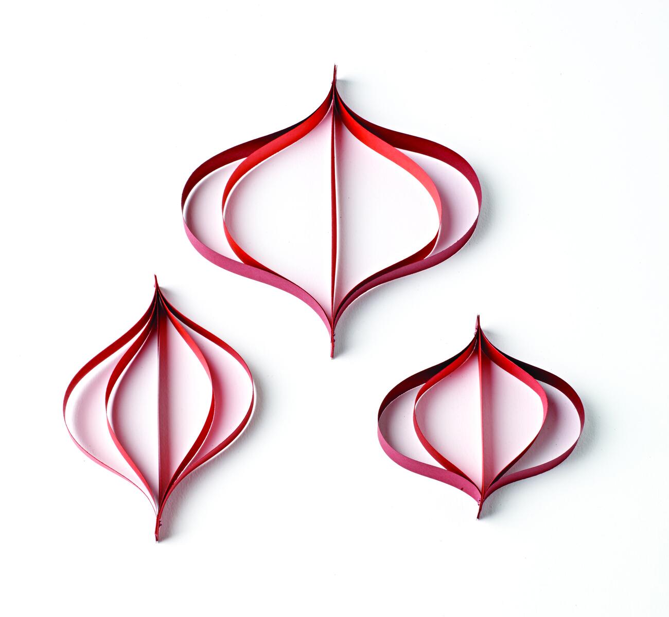Du trenger 5 papirremser i tre ulike lengder. To lengre, to litt kortere og én kort. Legg de to lengste ytterst og den korteste i midten. Legg begge endene av remsene kant i kant og stift dem sammen. Da får du automatisk en diamant.