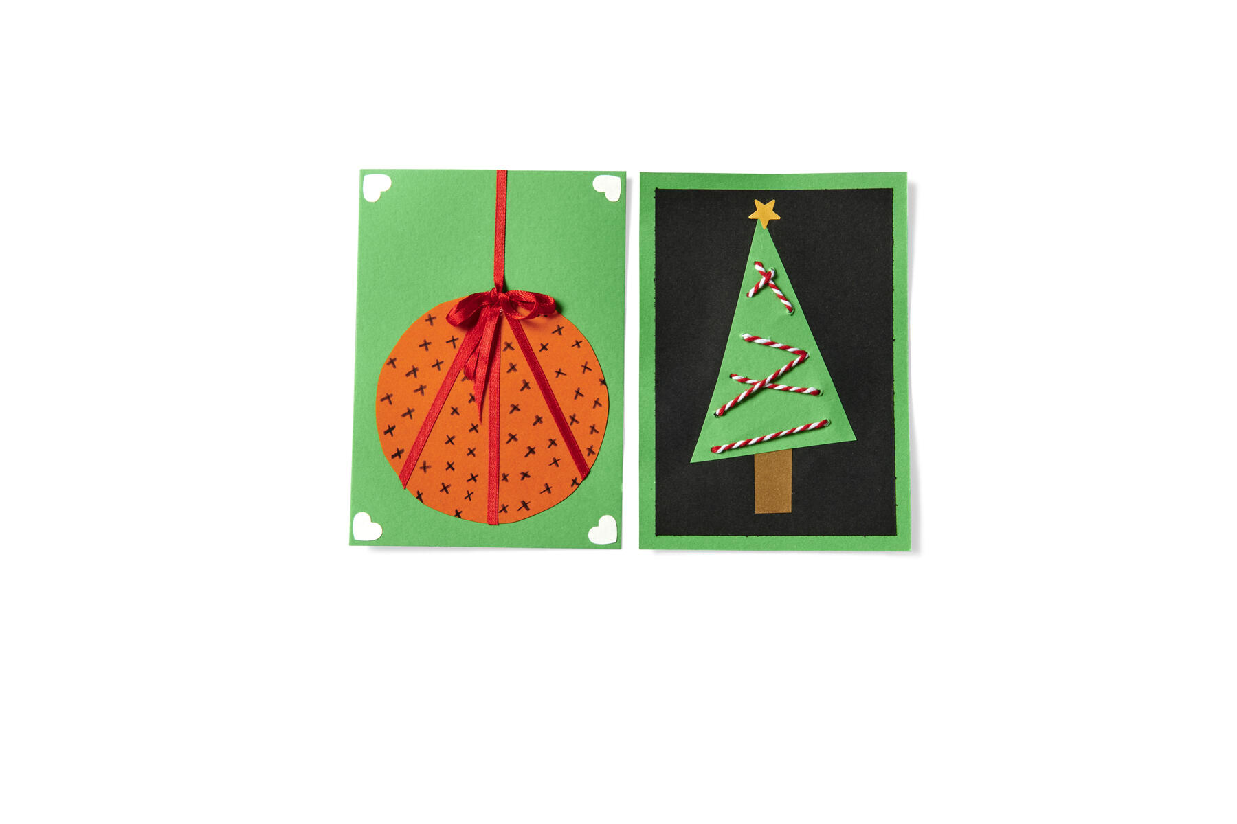 Lag egne julekort med papp, papirstrimler, klistremerker, stanseformer, stempler, bånd og tusjer. Det er bare fantasien som setter grenser!