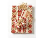 Pakk inn pakkene i ulikt gavepapir. Skriv ut bildet av et perlemotiv, eller ha bildet på skjermen og følg mønsteret. Stryk perlene sammen med bakepapir i mellom. La motivet avkjøles grundig før det løsnes fra platen. En strikkepinne er et godt verktøy for å løsne perlemotivetr fra underlaget. Både strykejern og smeltet plast er svært varme og kan forårsake brannskader, og stryking må derfor skje under oppsyn av voksne. Fest hampgarn på baksiden av pakken og dra båndet over til fronten. Heng deretter perlemotivet i garnet.