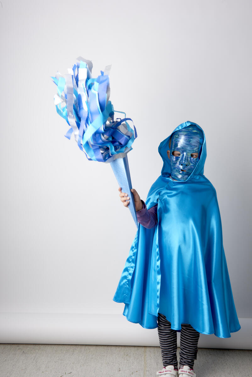 Mal masken blå. Mal over med litt grønn, gul og blå metallicmaling for en bedre effekt.