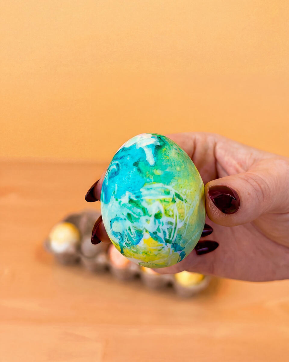 - Mal med boblene direkte på egget, eller rull egget i boblene. La tørke.