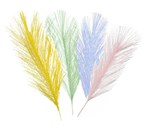 100 stk/pk. Fjær i blandede farger. Mål 2,5 cm x 5...