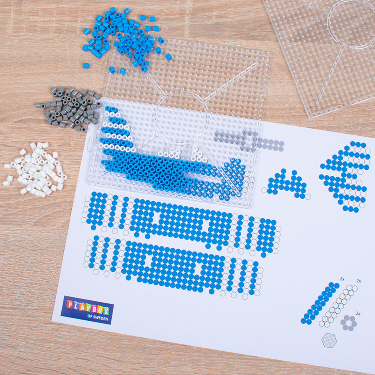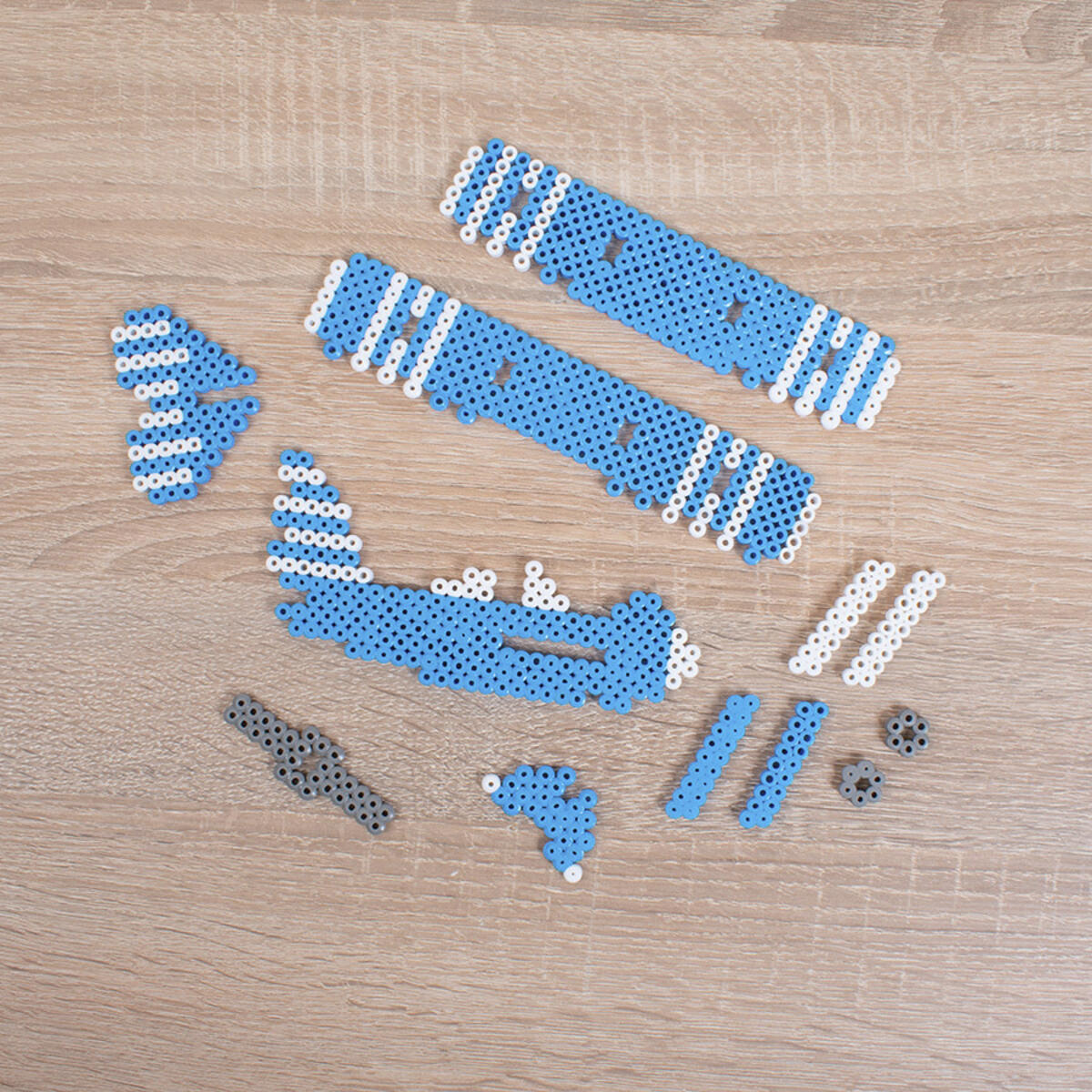 Skriv ut bilder av alle delene. Legg transparente perleplater på bildene og perle alle delene. Stryk perlene sammen med et bakepapir imellom. Husk å stryke motivet langsomt og lenge, slik at perlene smelter ordentlig sammen (men ikke i platen). La motivene avkjøle seg (gjerne under press) før de tas av platen. Tips! Bruk en strikkepinne for å løsne motivet fra platen. Både strykejern og smeltet plast er veldig varmt og kan gi brannskader, og dette bør derfor gjøres under oppsyn av voksne.
