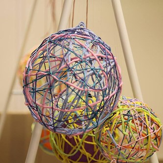 Heng opp ballongene og la de tørke skikkelig - helst et par døgn. Sprekk ballongen forsiktig med nål når klisteret har tørket helt, og lirk den ut av garn-egget.