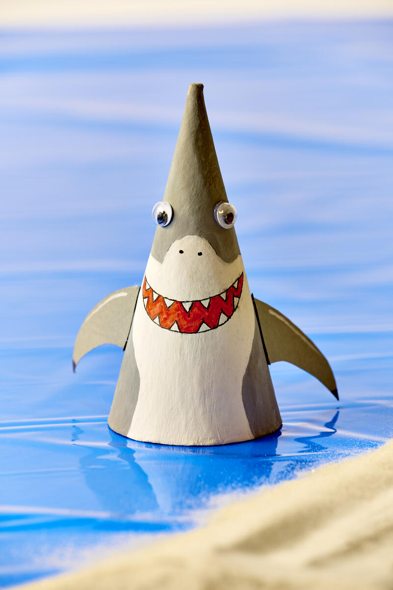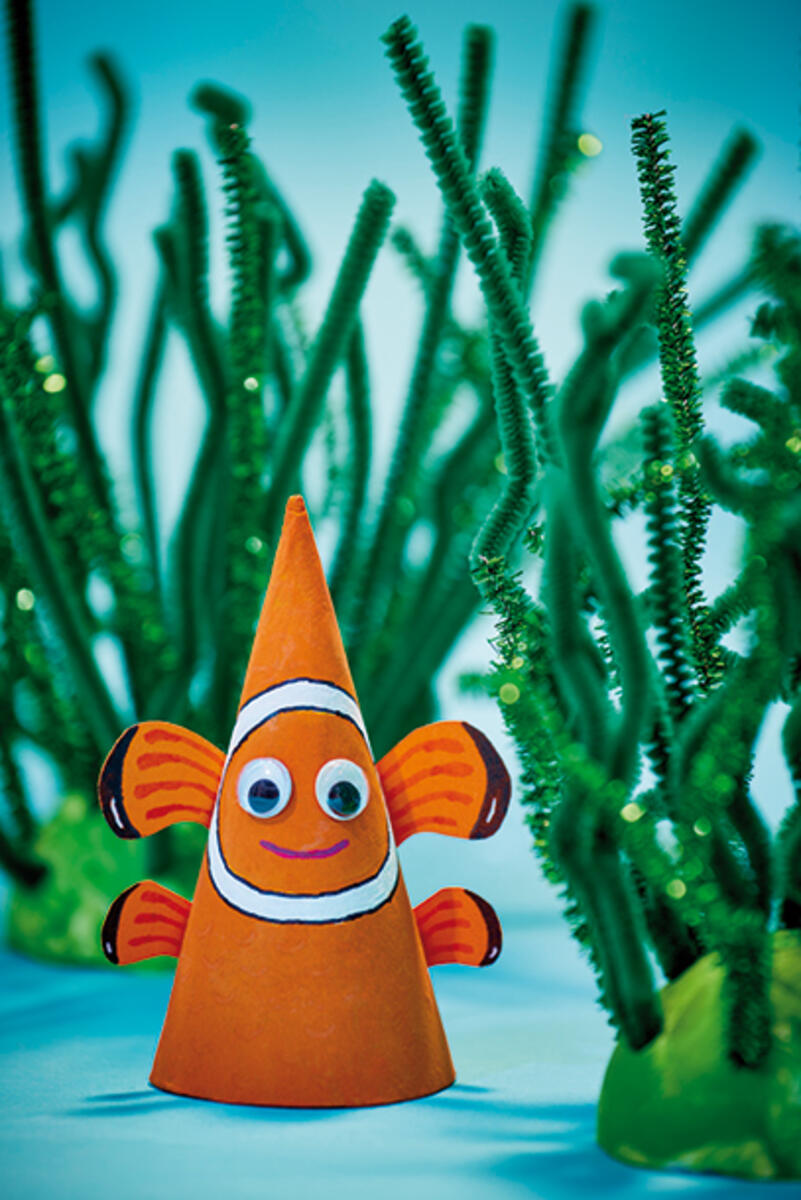 Finner, klør og ben er klippet ut av gladpapp som man også kan tegne litt ekstra detaljer på.