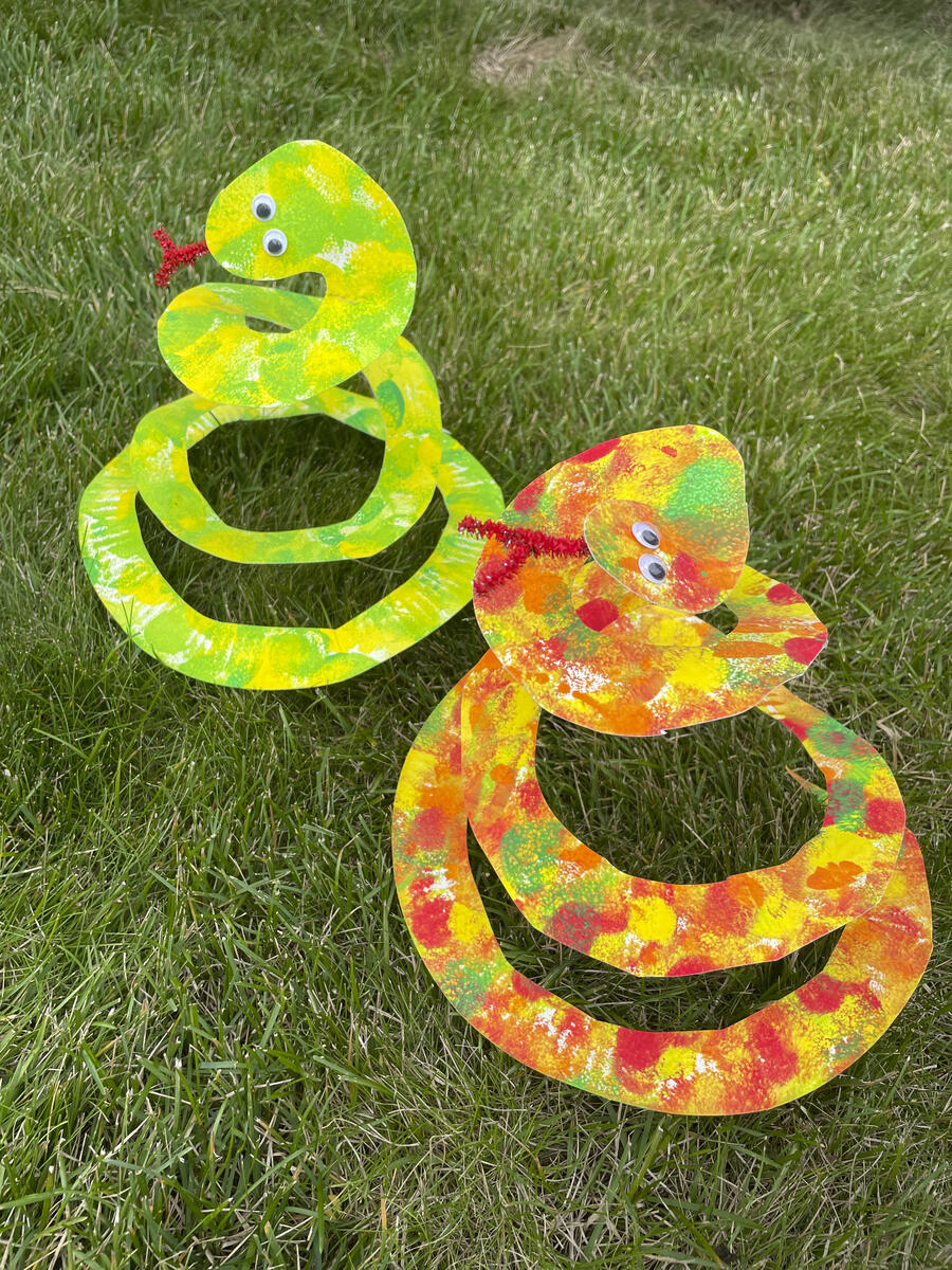 - 2. Klipp/lag en spiral av papptallerkenen, og avrund det som skal være hode.