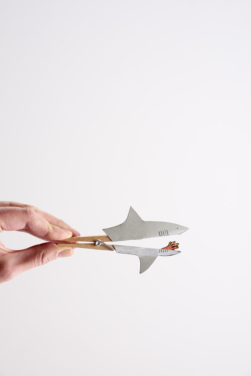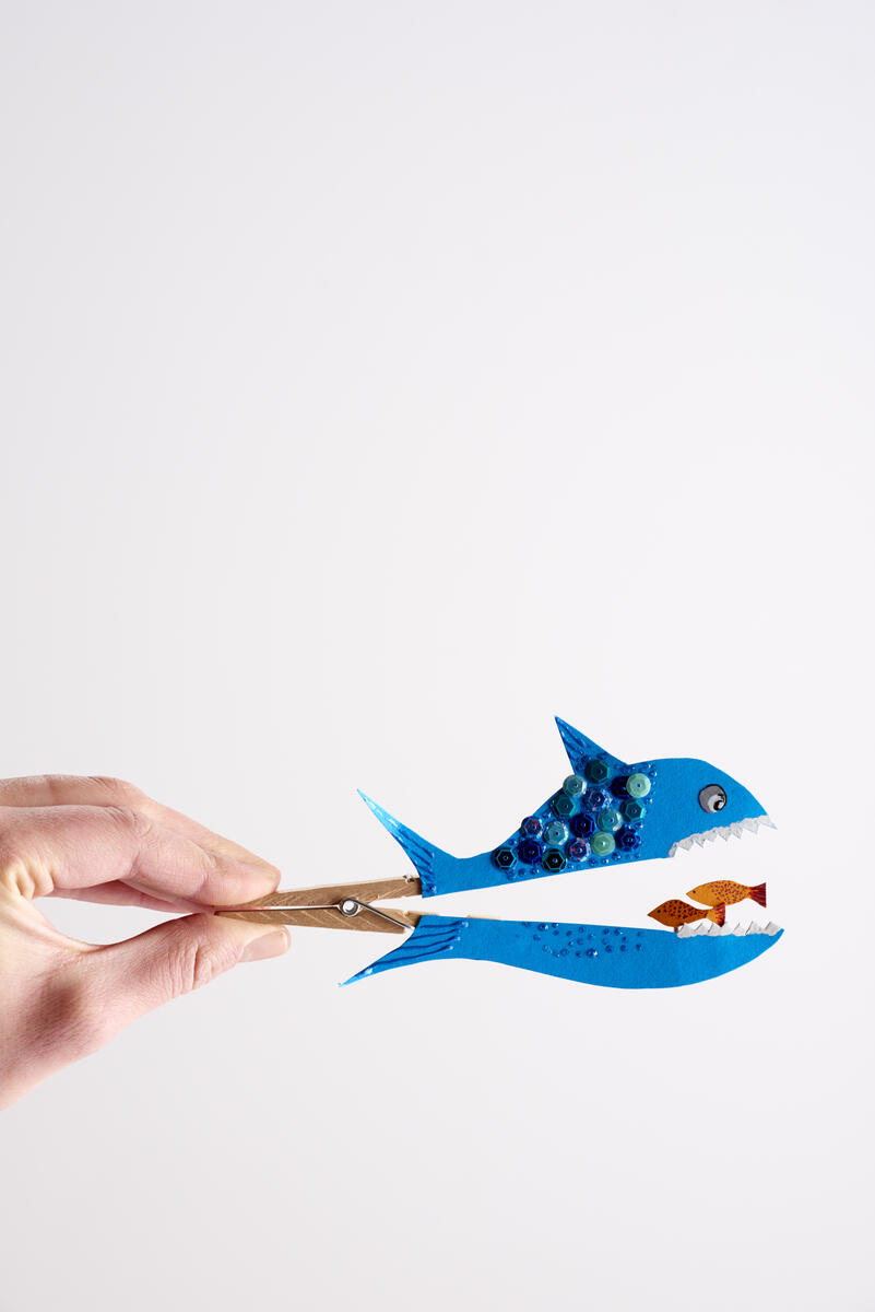 Lim fast fiskens deler på klesklypen.