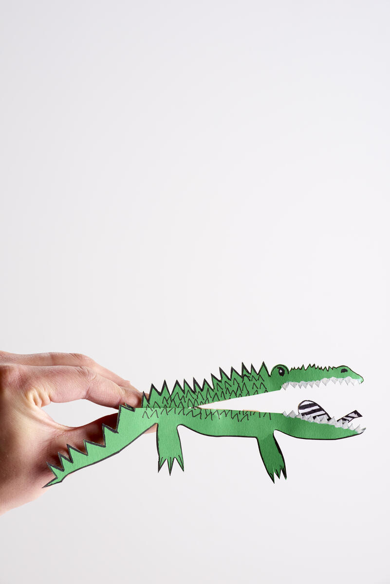 Klem på klypen, munnen åpner seg og maten blir synlig.