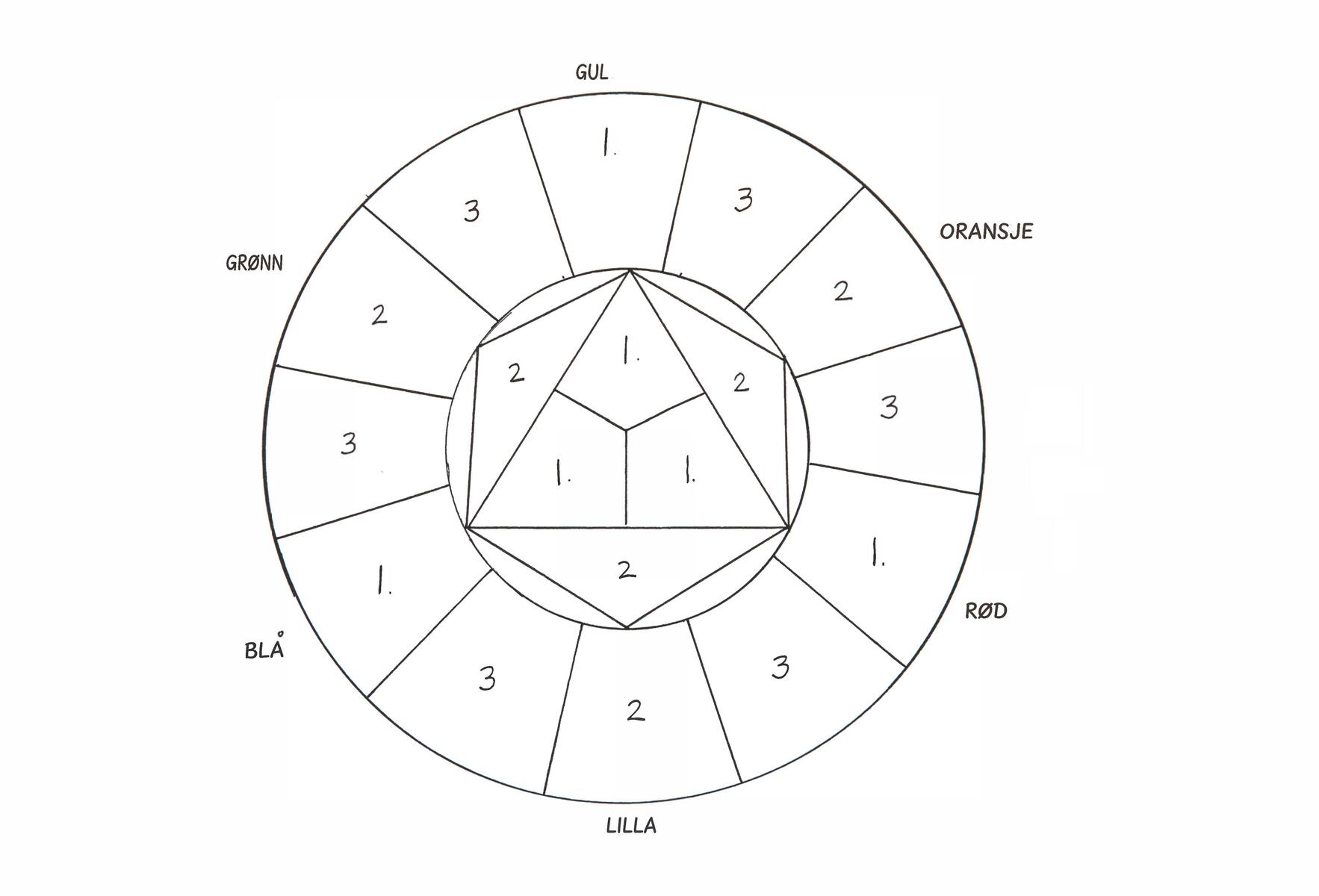 - Bland primærfarger for å få sekundærfarger, og fyll i feltene merket med tallet 2.