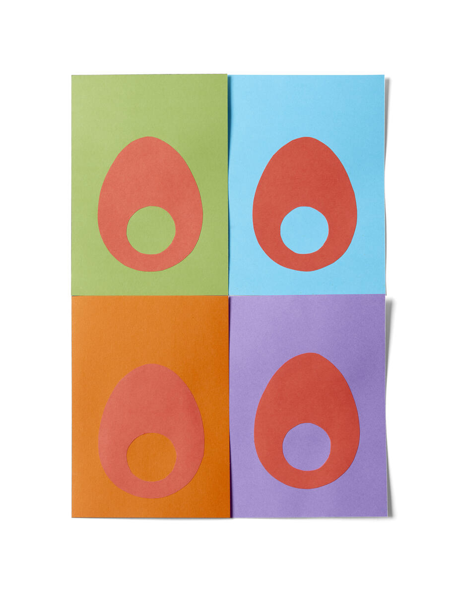Klipp fire stykker i den valgte formen (egget) og klipp et hull (eggeplomme)