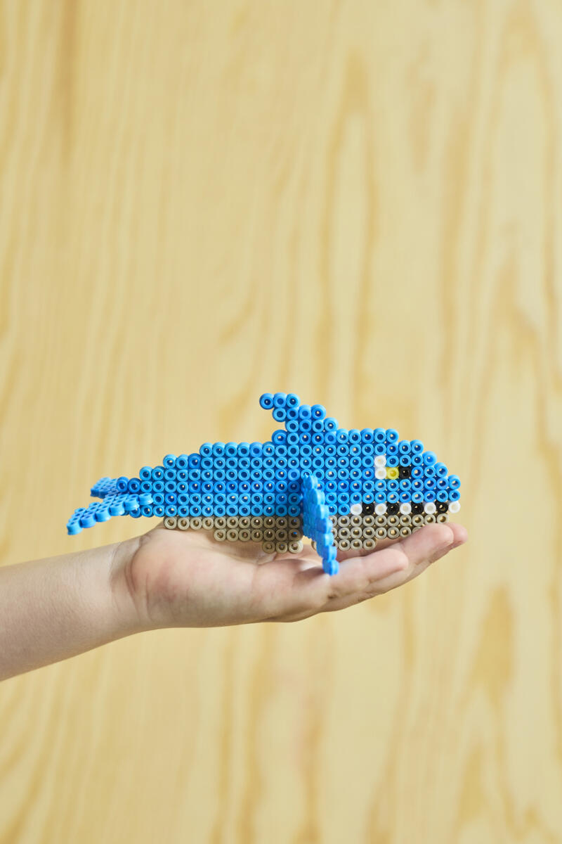 - Legg bakepapir over perlene og stryk langsomt med strykejern til alle perlene har smeltet sammen (men ikke i platen). OBS! Få hjelp av en voksen når du skal stryke. Både strykejernet og perlene blir veldig varme. Legg noe tungt over og la figurene avkjøles.