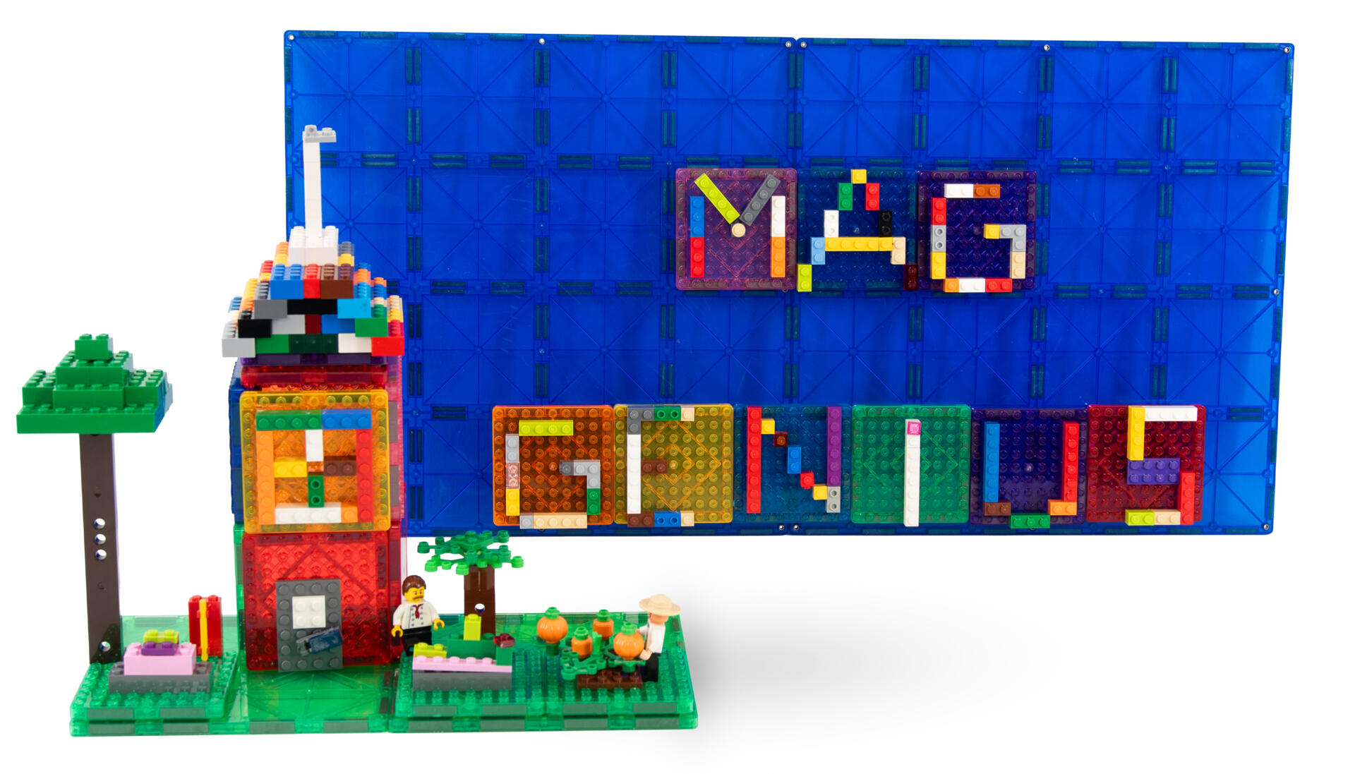 Kombiner Mag Genius og med andre byggeklosser (Lego eller lignende). Bygg, skap og la kreativiteten flyte!