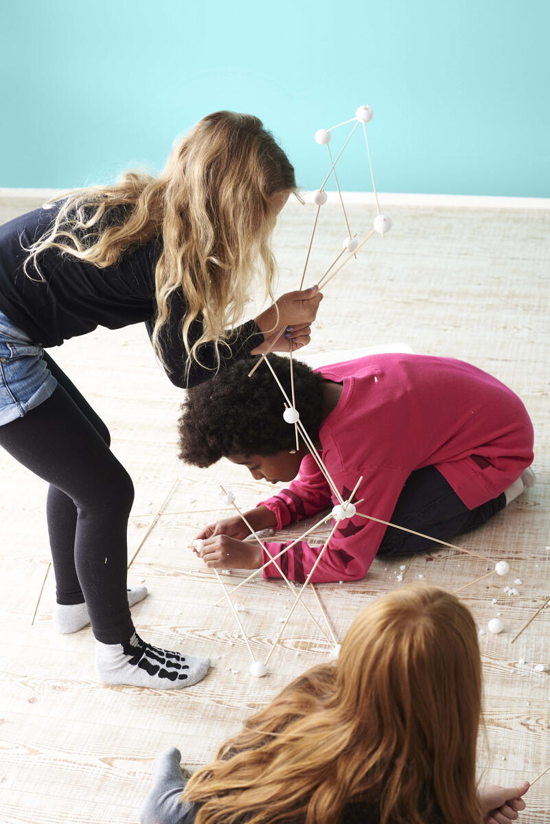 Del inn i lag med 2-3 barn på hvert lag. Fordel isoporkuler og bambuspinner jevnt mellom lagene. Oppgaven er enkel: bygg så høyt som mulig på 20 minutter.