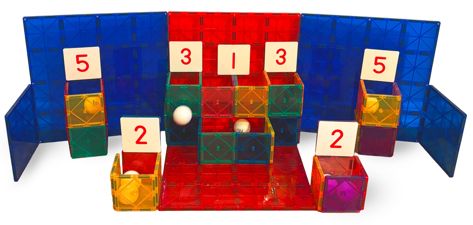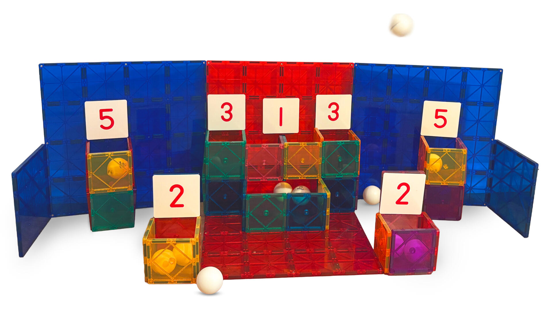 - Bygg ulike kuber og marker med tall kubens poengsum. Forsøk å kaste bordtennisballer i kubene og samle poeng.