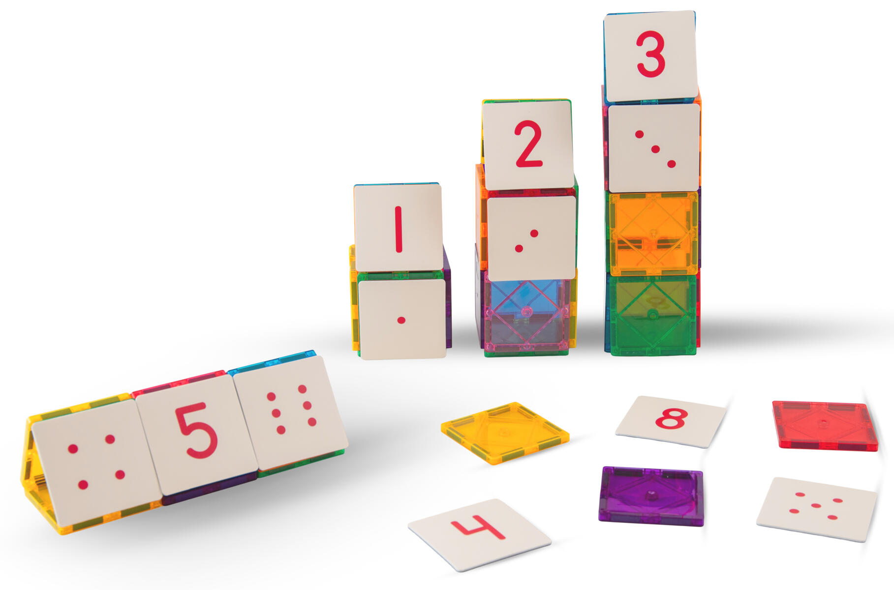 Bygg ulike konstruksjoner med Mag Genius hvor dere kan øve på tallrekkefølge ved å plassere tall og antall på de magnetiske byggeplatene. Det går også fint å feste tallene direkte på en magnetisk flate (whiteboardtavle). Lek og lær tall og antall samtidig!