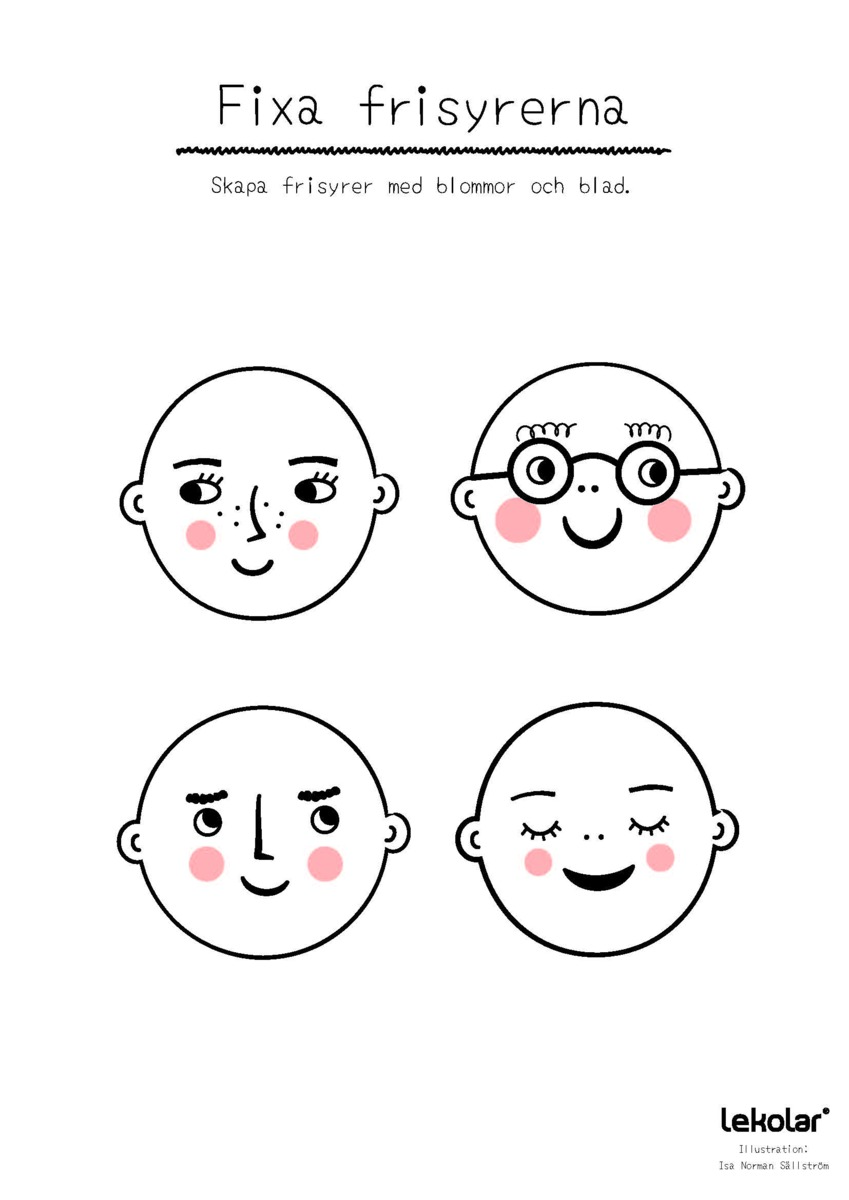 - Skriv ut malen på A3 eller A4 papir. Klipp ut hvert ansikt om det blir enklest for barna.
