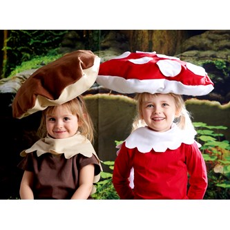Klipp ut en remse ca. 10 cm bred og 60 cm lang. Beige til Steinsoppen og hvit til Fluesoppen.