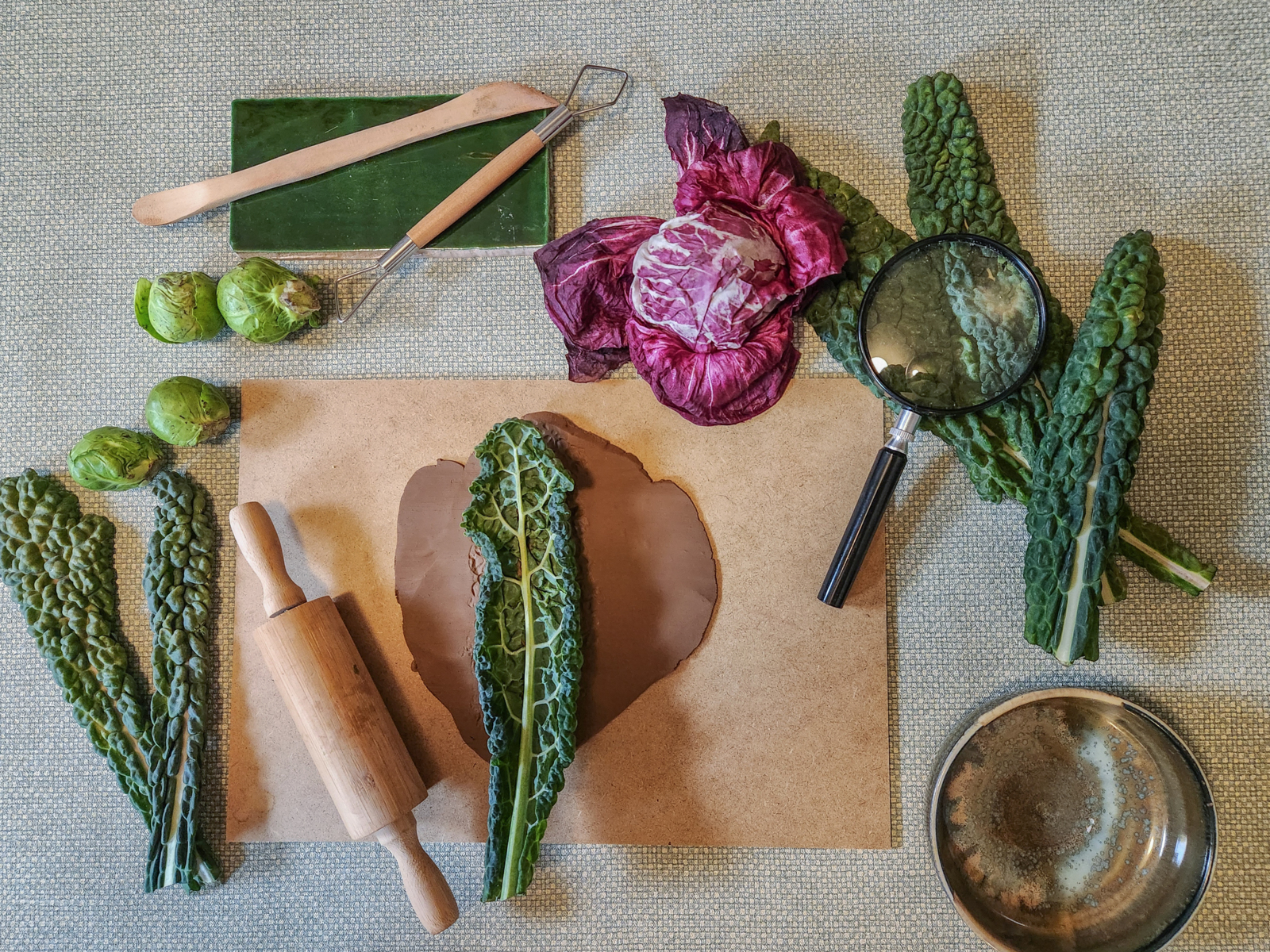 Grønnsaker har mange ulike teksturer og former, og passer derfor perfekt til å lage mønster i leire.