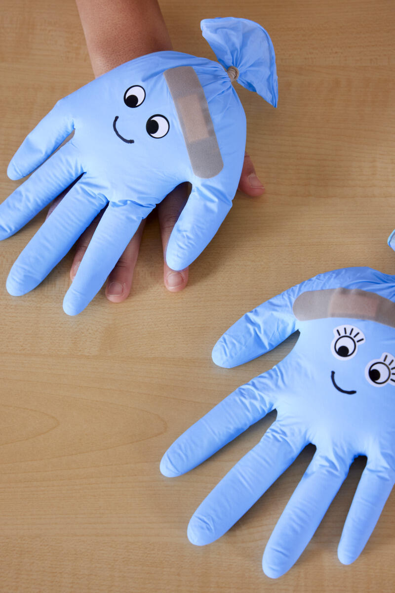 - Ta en hanske på hånden, og tre deretter en ny hanske utenpå den første.