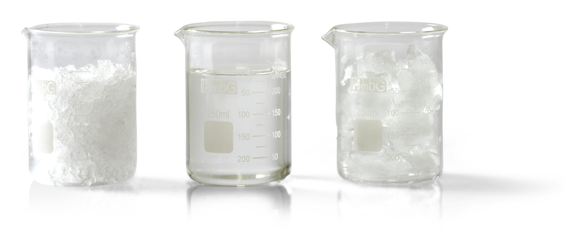 Fyll et målebeger med vann, et med is og et med snø. Begerne skal fylles til øverste merke. La det smelte og se forskjellen.